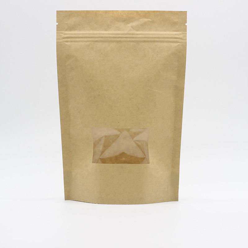 Doypack Durchsichtliche Taschen 180 Mikron Braune Papiertüten mit klarem Fenster